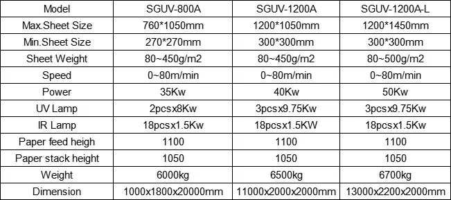 4: UV частта приема 8-12kW регулируем електронен източник на светлина, който значително подобри ефективността на безопасността от традиционния източник на светлина на напрежението. Източникът на светлина може да регулира автоматично яркостта, тъй като промяната на скоростта на работа на машината, която може да бъде променена от 30% до 100%. По този начин средната консумация на енергия се спестява с повече от 30%.